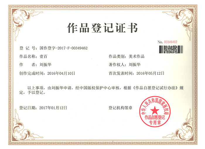 壹百作品登記證書(shū)