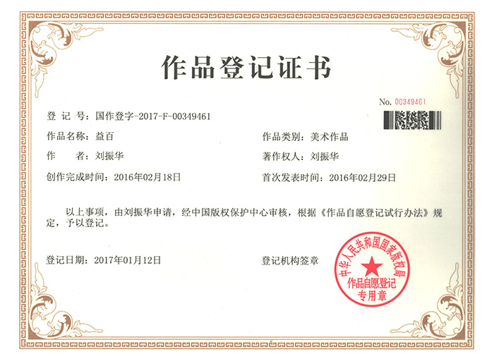 益百作品登記證書(shū)
