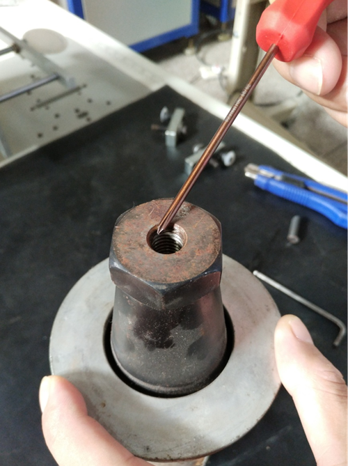 1.振子端的斷螺絲,機(jī)器通電,點(diǎn)動(dòng)發(fā)振箱的音波檢測(cè)按鈕,振子產(chǎn)生振動(dòng)后斷螺絲會(huì)被振出來(lái)。同時(shí)可以用小螺絲刀逆時(shí)針受力于斷螺絲把它導(dǎo)出來(lái)。