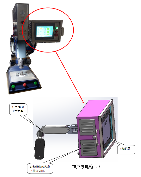 4. 區(qū)別:市面上的塑焊機(jī)超聲波電箱體積很大、笨重,并排于機(jī)器上占地面積大;益百首創(chuàng)設(shè)計的新穎超聲波電箱,結(jié)構(gòu)美觀扎實、體積小、輕巧簡便、安裝在機(jī)體上方便操作,不必占用太多空間。