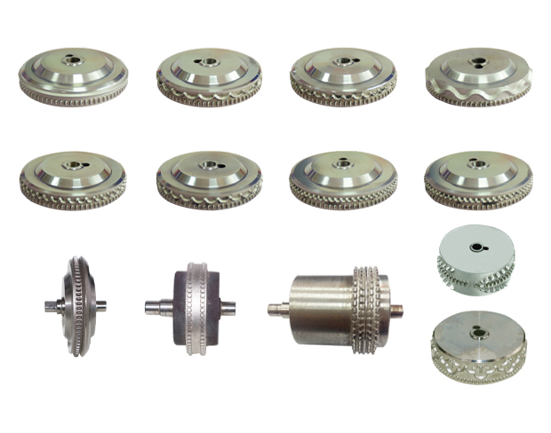 功能:花樣車邊、縫合、裁切、分條、成形、滾孔、壓紋、印色、燙金等可一次熔切完成。